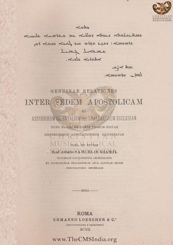 Keywords - Genuine Relationship Between the Seat of the Apostolic and the Assyrians of the East or the Chaldean Church Rome & Syrians