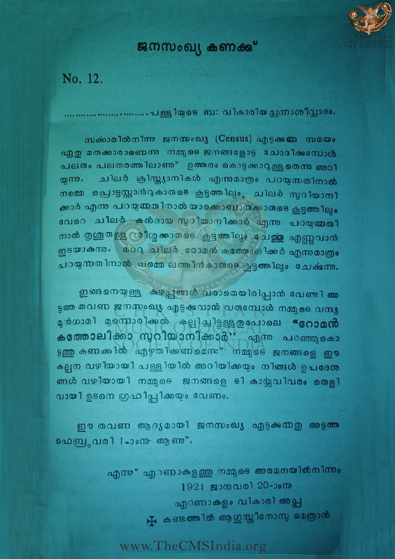 Letter (dt. 20-January,1921) of Mar Augustine Kandathil (1874-1956) on the identity of the Syro Malabar Catholics