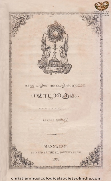 Keywords - Pallikalil Anushtikendathaya Namaskkarakramam 1928, St. Joseph's Press, Mannanam