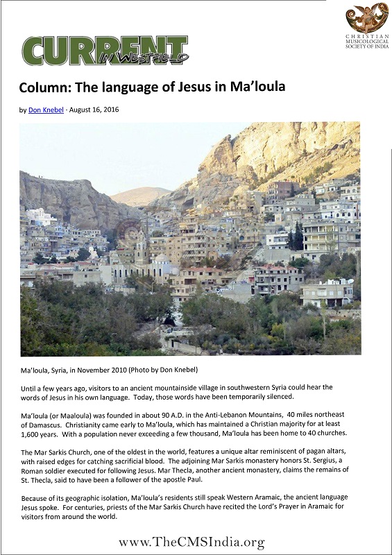 Keywords - The language of Jesus in Ma’loula,Current Westfield, Don Knebe