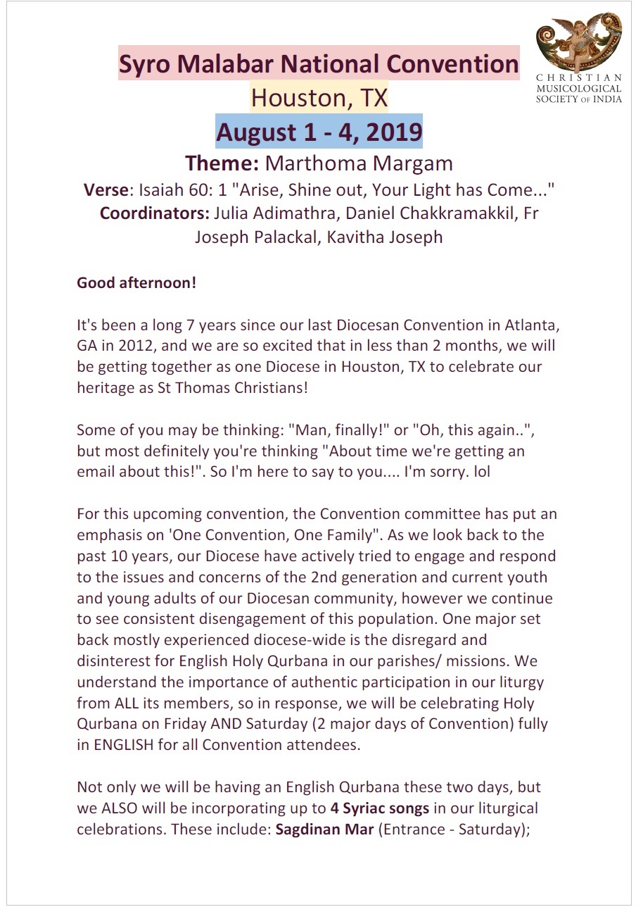 Keywords - #SyroMalabarNational #Convention #2019 #English #Choir #Invitation