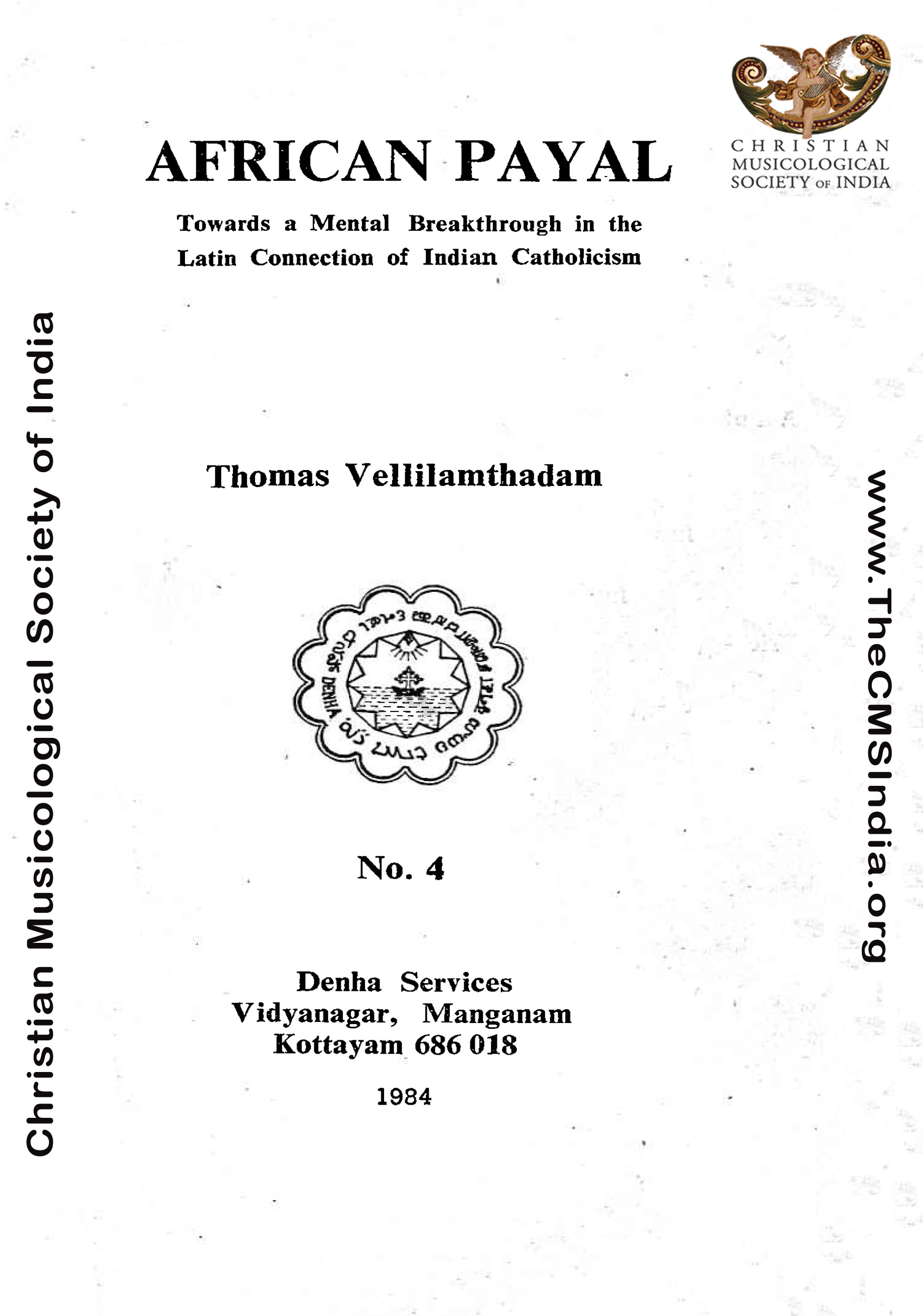 Keywords - African Payal,Indian Catholicism.Thomas Vellilamthadam, Denha Services, Vidyanagar, Manganam, Kottayam,