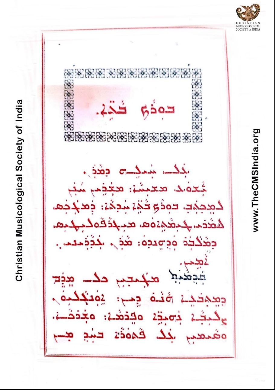 വി .മാർ അബിമലേക്ക് തിമാഥെയോസ് മെത്രാപ്പോലീത്തായാൽ വിരചിതമായ പൗരസ്ത്യ കൽദായ സുറിയാനി സഭയുടെ ഭവന വെഞ്ചിരിപ്പ് (Burakh Bathe) ശുശ്രൂഷ ക്രമം (1937)