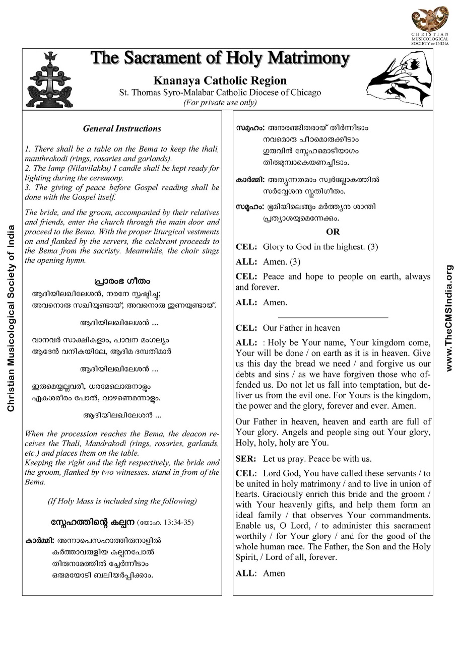 Keywords - The Sacrament of Holy Matrimony-Bilingual, St Thomas Christian, Catholic Church