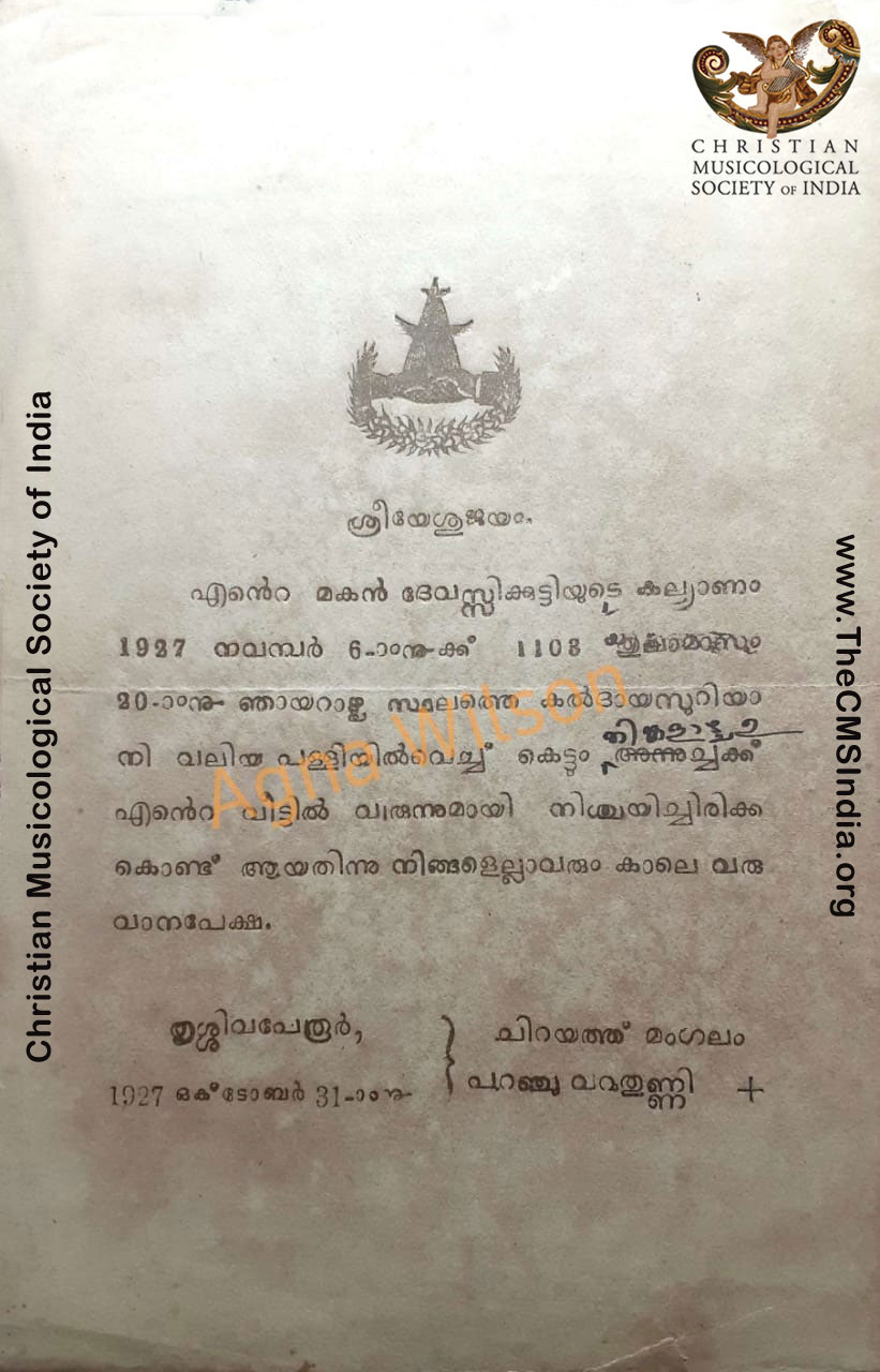 1927 ലെ ഒരു കല്ല്യാണ കുറി