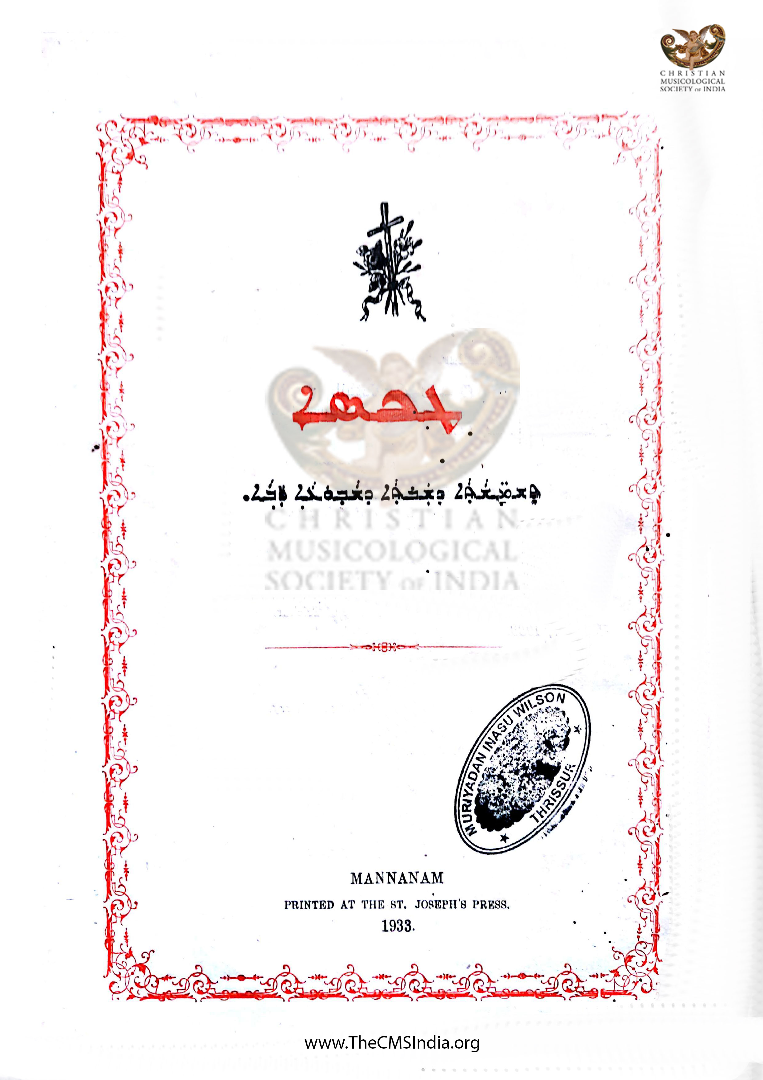 J.Kalachery, Ep.Changanacherry March 5, 1933 - Printed at - St joseph's Press. Mannanam