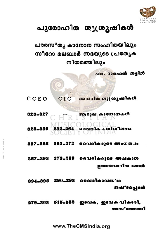Keywords -Purohitha Susrushikal, Syro Malabar Church, Church of the East, Fr.Raphael Thattil, Raphael Thattil