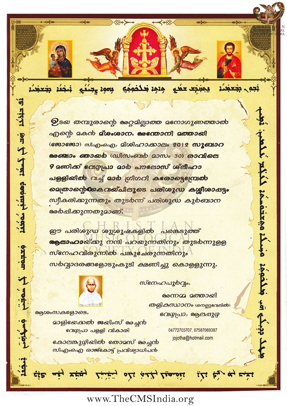Keywords- #FirstOrdinationInvitationCardwithsyriac #SyriacInvitationcard #OrdinationinvitationCardwithSyriac