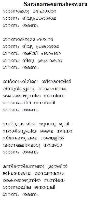 Śaraṇamēśumahēśwarā ശരണമേശുമഹേശ്വര |