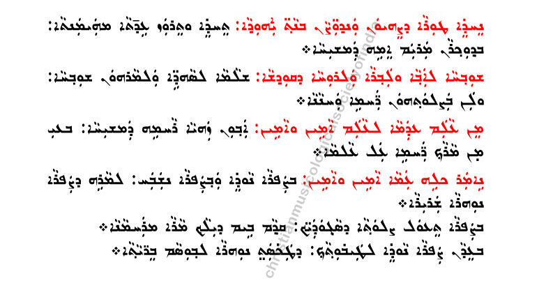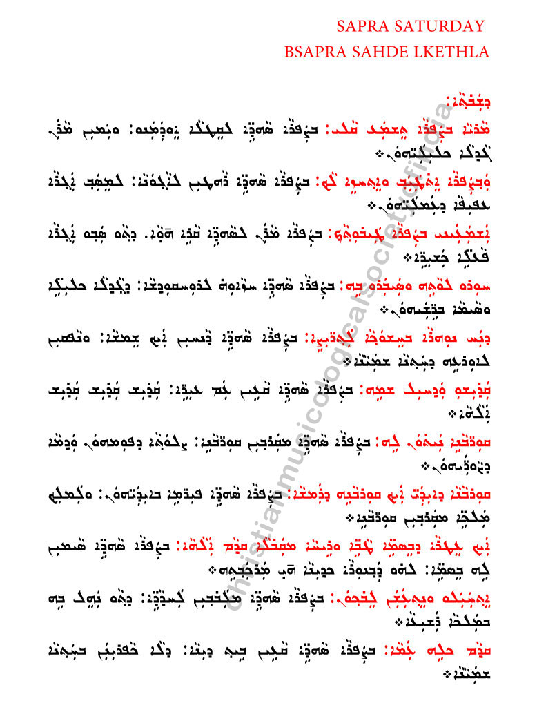 ഈ പറയുന്ന പാട്ടുകൾ ഒരു ആഴ്ച മുഴുവനും സാധാരണ ദിവസങ്ങളിൽ സപ്ര (പ്രഭാത പ്രാർത്ഥന )യ്ക്കു ഉപയോഗിക്കുന്നത് ആണ് ഇതിൽ താഴെ പറയുന്നവ ഓരോദിവസത്തേയും ഓരോ വിശുദ്ധരെയും രക്തസാക്ഷികളെയും പരിശുദ്ധ അമ്മയെയും ഓർക്കുന്ന പ്രാർത്ഥന ഗാനങ്ങൾ ആണ്