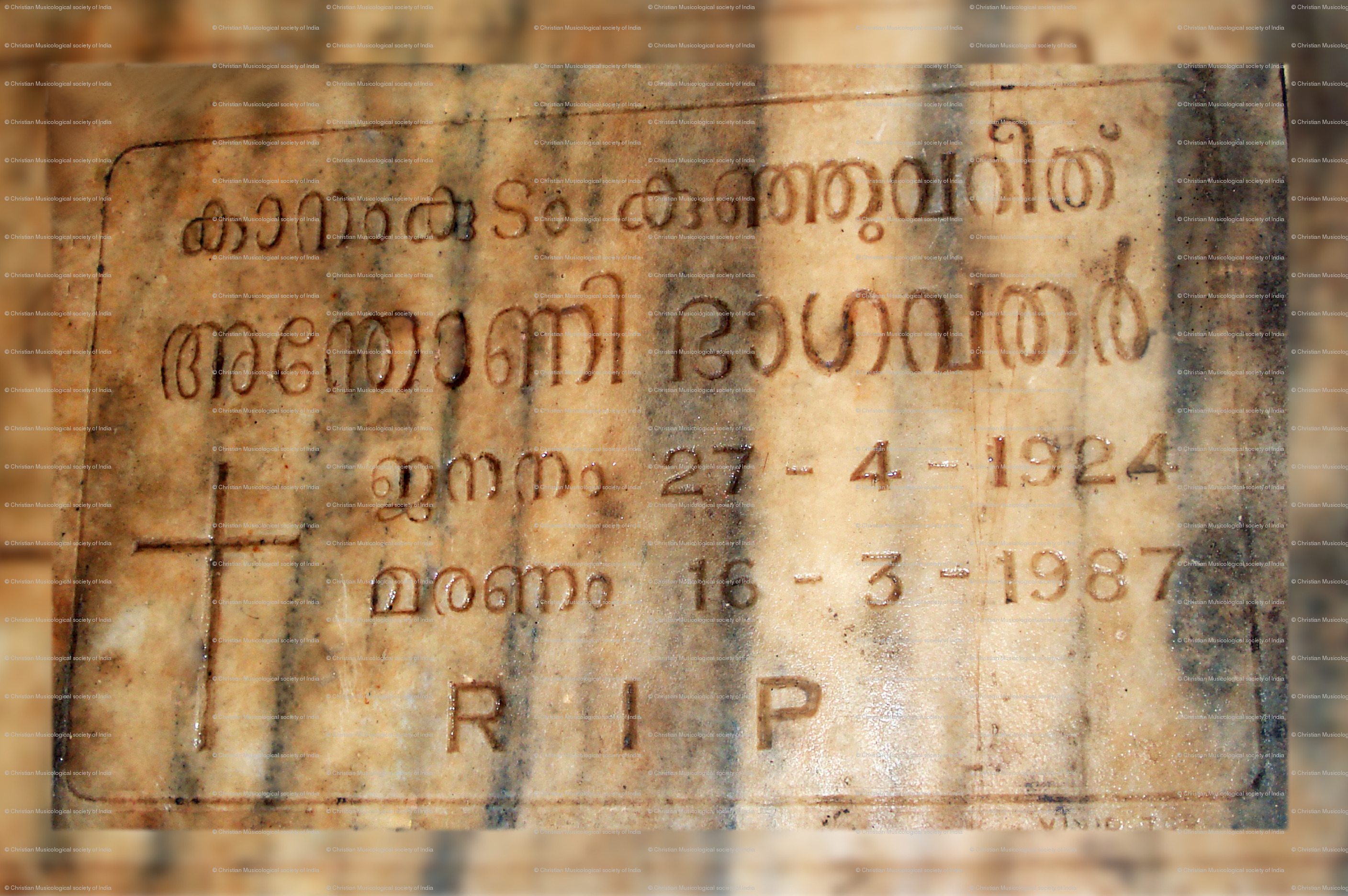 In physical appearance, Antony Master was over six feet tall and had a commanding presence. He was always dressed in white with a simple cotton dhoti and a long collarless shirt (referred to by a Persian word, jubba). In contrast to his polite and genteel personality, Antony Master possessed a powerful baritone voice, resonant and authoritative (one of my regrets is that, in spite of our close association, I did not document his speech voice for posterity). Antony Master died suddenly of heart failure on a hot summer day on 16 March 1987, and was buried at the cemetery of his native parish, St. Mary’s Church. Antony Master is survived by his wife Rosey, their two daughters Lilly and Lissy, and son Varghese Antony. This article is in progress. Kindly send suggestions to