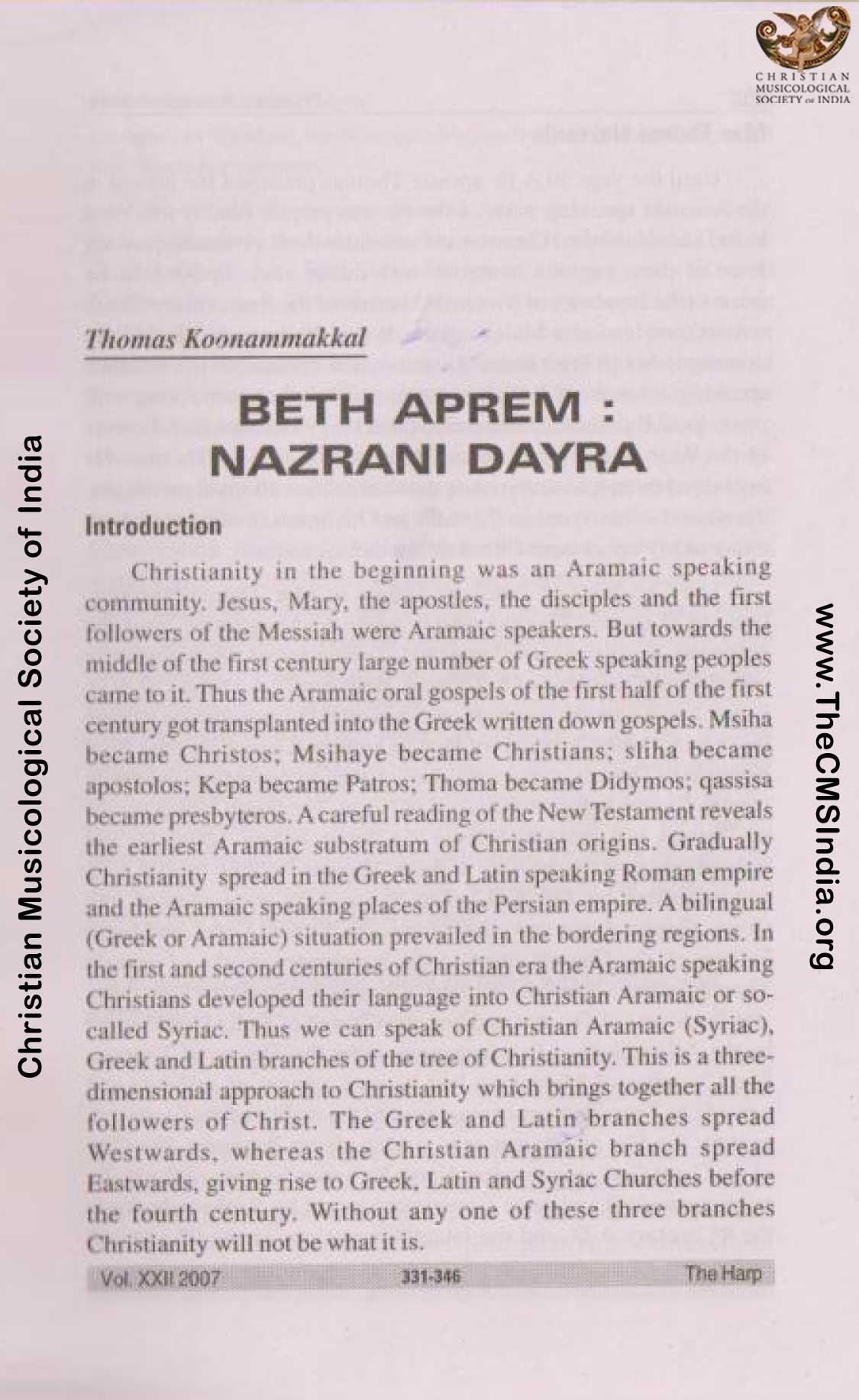 DR. THOMAS KOONAMMAKKAL | മല്പാൻ കൂനമ്മാക്കൽ തോമാക്കത്തനാർ |Koonammakkal Thoma kathanar is an Indian Nazrani priest and scholar of the St. Thomas Christian community. He is a member of the Syro Malabar Church in the eparchy of Palai. He had his studies in Rome and holds Masters degree (1998) in Syriac studies and Ph. D in Patrology from Oxford Univeristy (1991) . He is the founder of Beth Aprem Nazrani Dayara and is a strong advocate of Aramaic/Syriac heritage and traditions in the Syro-Malabar Church. He is also a theologian, liturgist, orator, professor, ecumenist, and author. He is a Syro-Malabar Catholic priest and syriacist, scholar and church historian. He is an expert in Karshoni Malayalam and is the author of the most comprehensive introduction to Malayalam Karshon. He has also authored several critical articles on Early Christianity and on the works of Saint Ephrem.