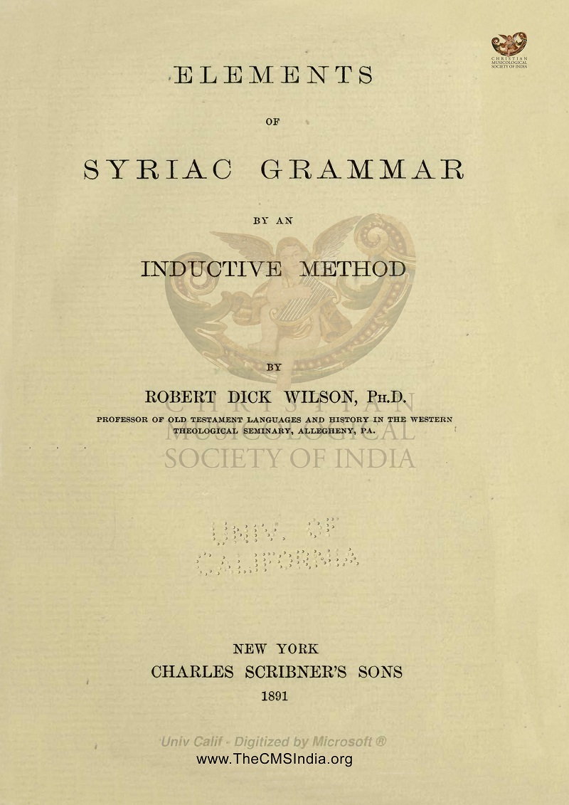 Keywords - #ElementsofSyriacGrammar #InductiveMethod #RDWilson #RobertDickWilson #CharlesScribnersSons #NeYork