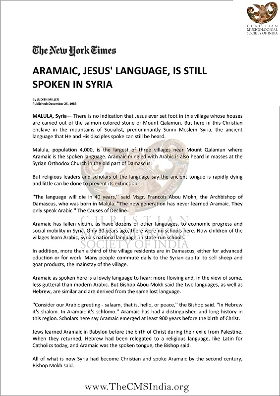 Keywords -Aramaic , Jesus' Language, is Still Spoken in Syria, Judith Miller, New York Times
