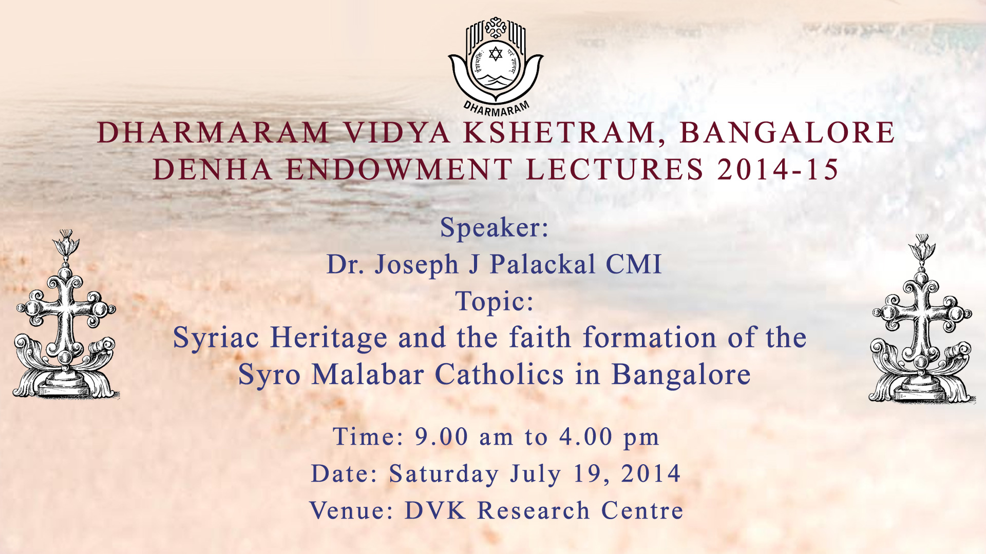 Keywords - #Dharmaram_Vidhya_Kshetram #Bangalore #Denha #Endowment_Lectures #2014-15 #Dr_Joseph_J_Palackal_CMI