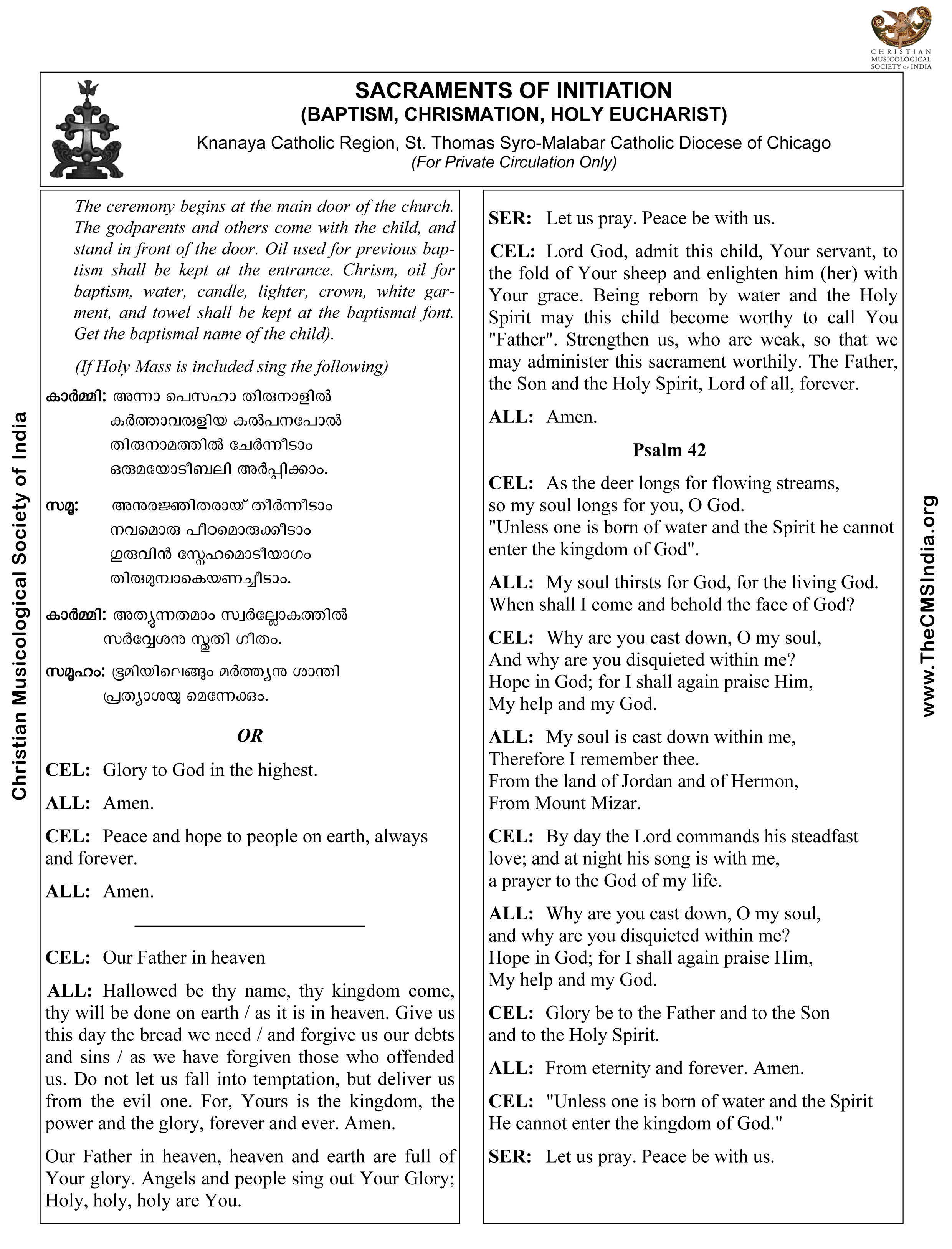 Keywords - Baptism-English, Syro Malabar Church, St Thomas Christians, Sacrements of Initiatio, Christmation, Holy Eucharist, Knananya Baptism