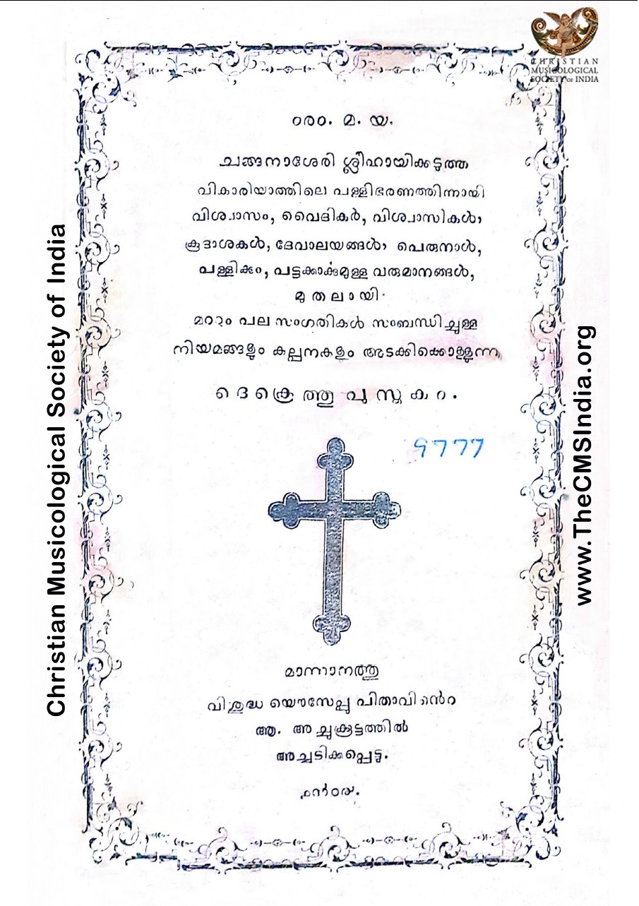 Keywords- Dekrath Pusthakam 1904, Dekrath Pusthakam, Mar Ouseph Printers, Mannanam, Kottayam, Padi Saadhanam, St Thomas Christians