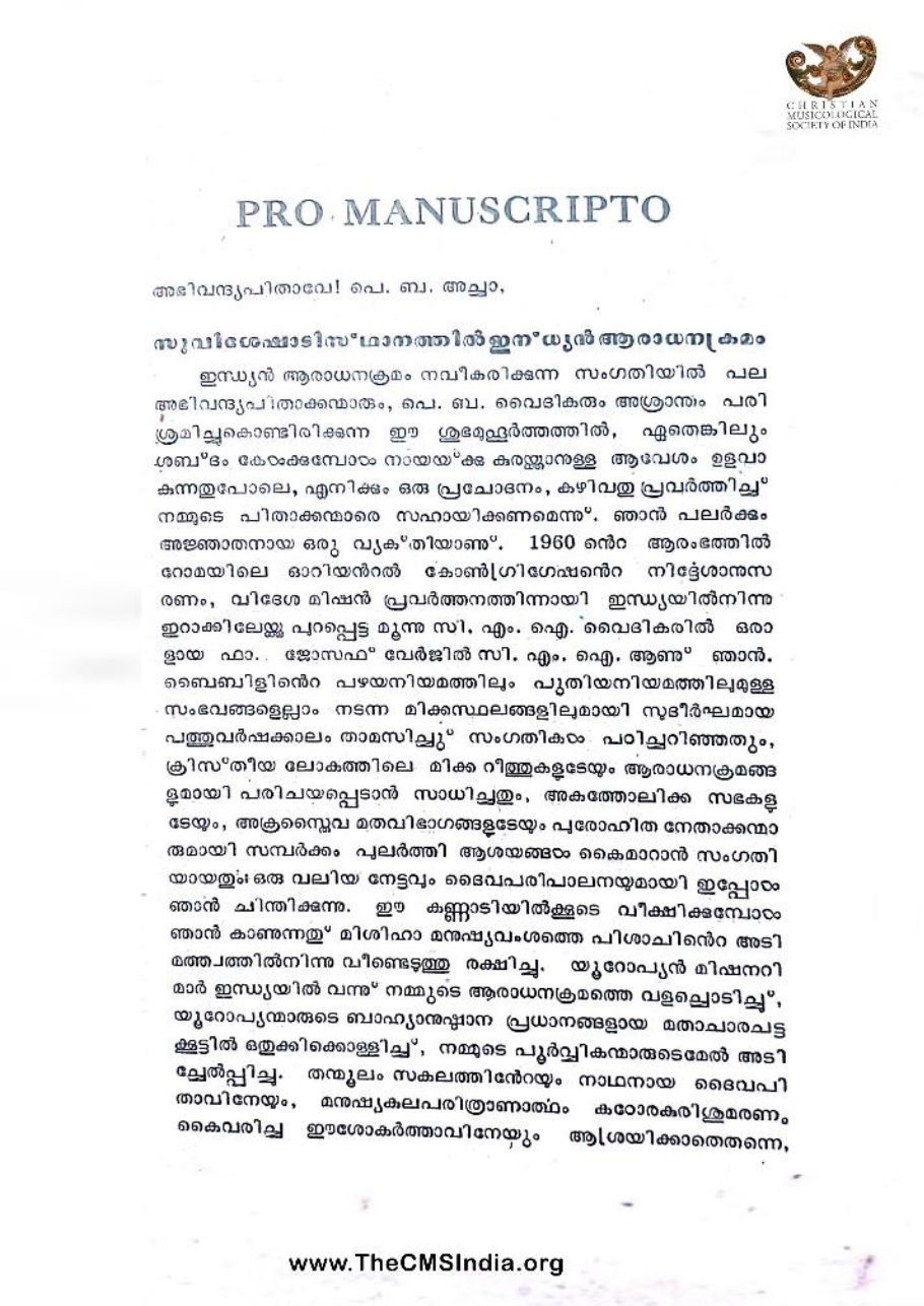 Keywords - Suvisheshaadisthanathil Indian AaraadhanaKramam, Fr. Joseph Virgil C.M.I