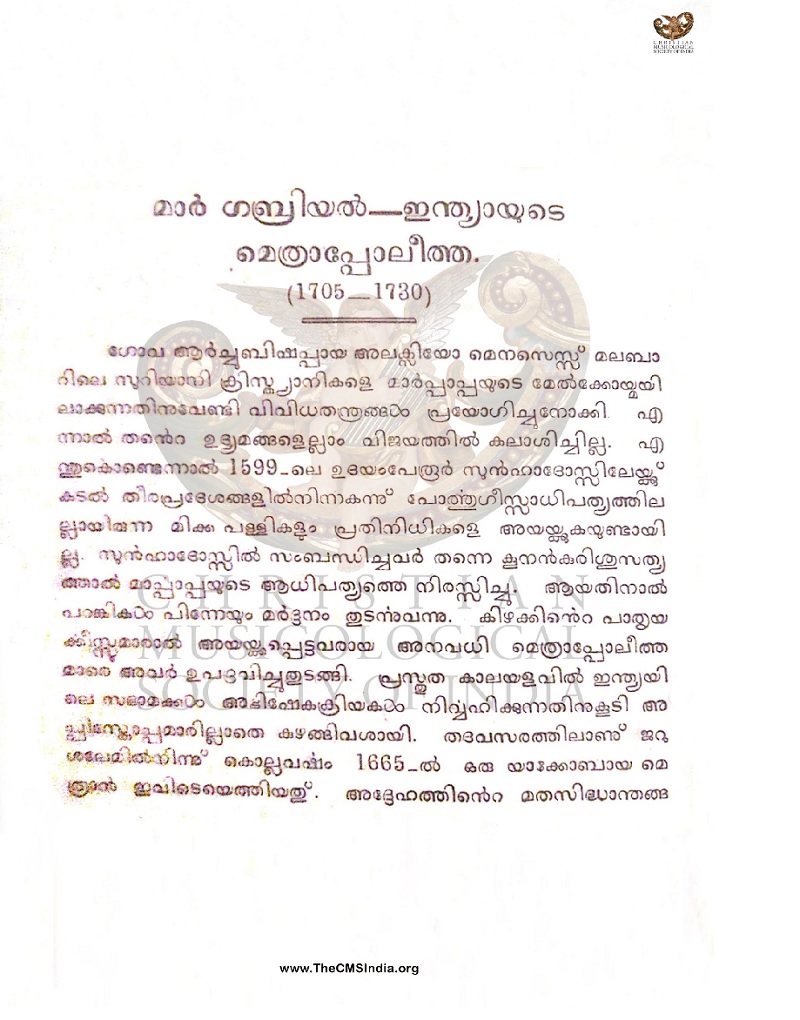 Mar Gabriel - Indiayude Metrapolitha (1705-1730)