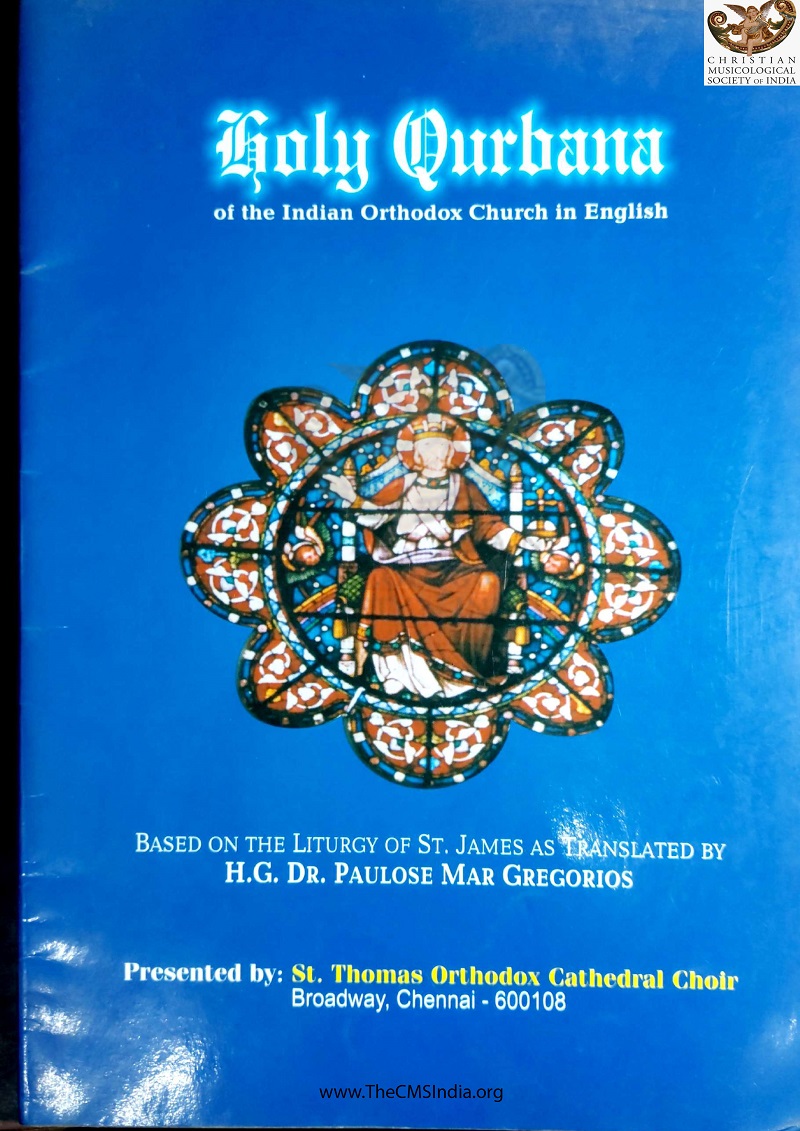 Presented by - St Thomas Orthodox Cathedral Choir Broadway Chennai - 600108 Holy Qurbana Audio CD and Cassettes are Produced and Markted by Madras Orthodox Music Society A2 MIG Flats , Foreshore Estate Chennai - 600028. India . Tel : 24941038 email : info@ momsmusic.org