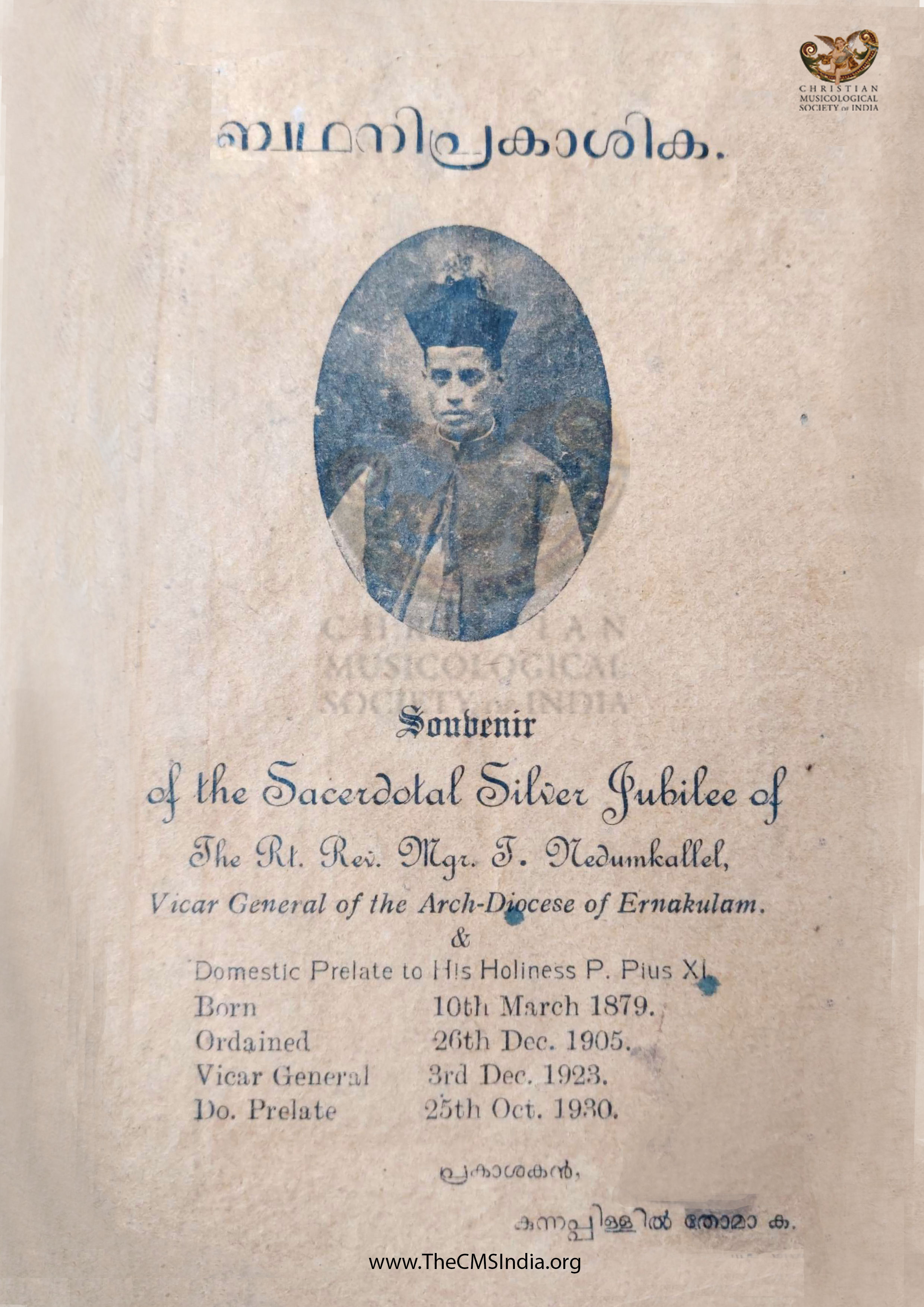 Souvenir of the Sacerdotal Silver Jubilee of the Rt. Rev. Mgr.J. Nedumkallel