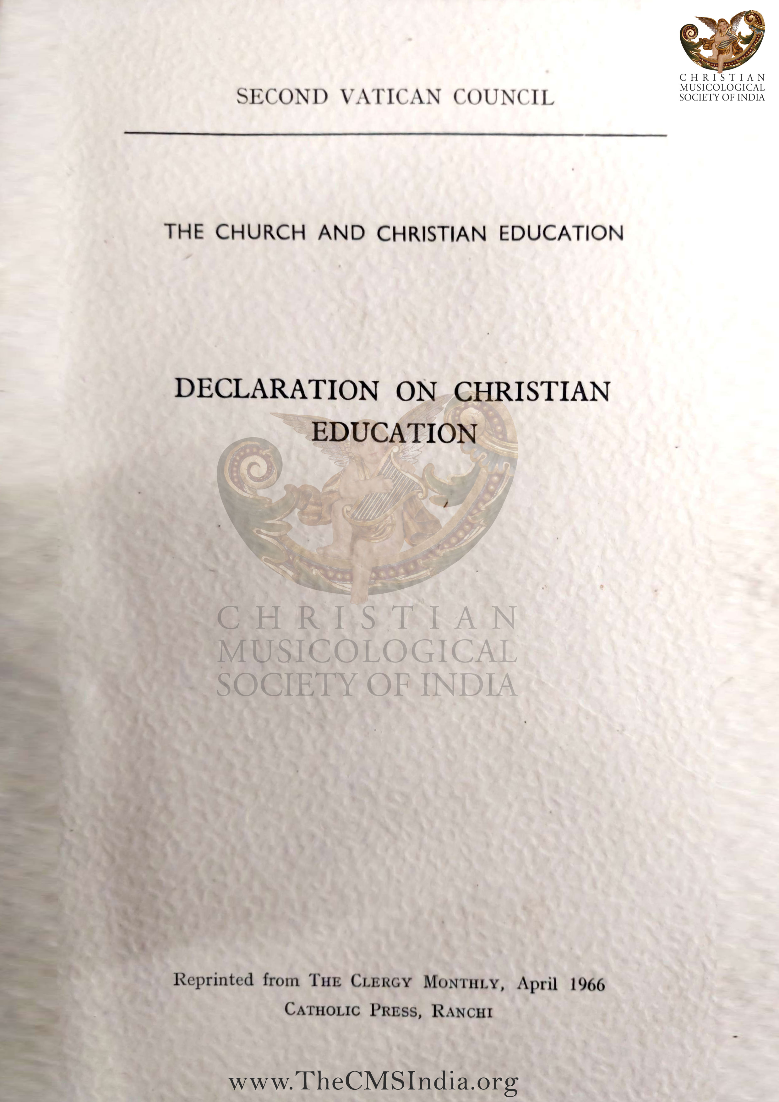 Reprinted from the Clergy Monthly February 1966 Catholic Press Ranchi