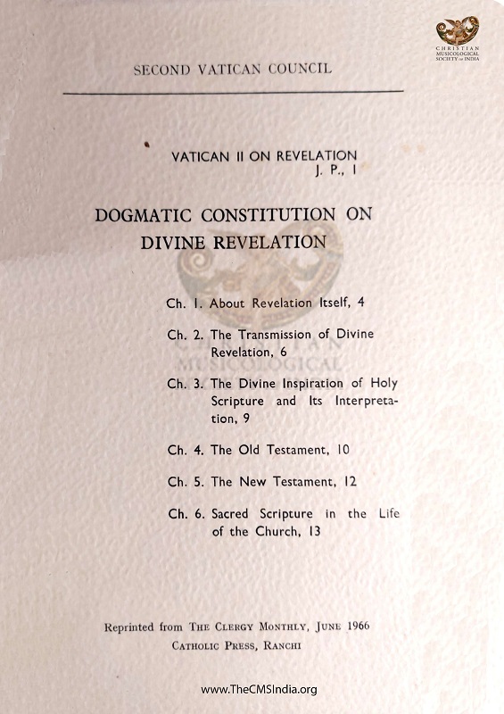 Keywords - Dogmatic Constitution on Divine Revelation, Catholic Press Ranchi, Catholic Press, Ranchi
