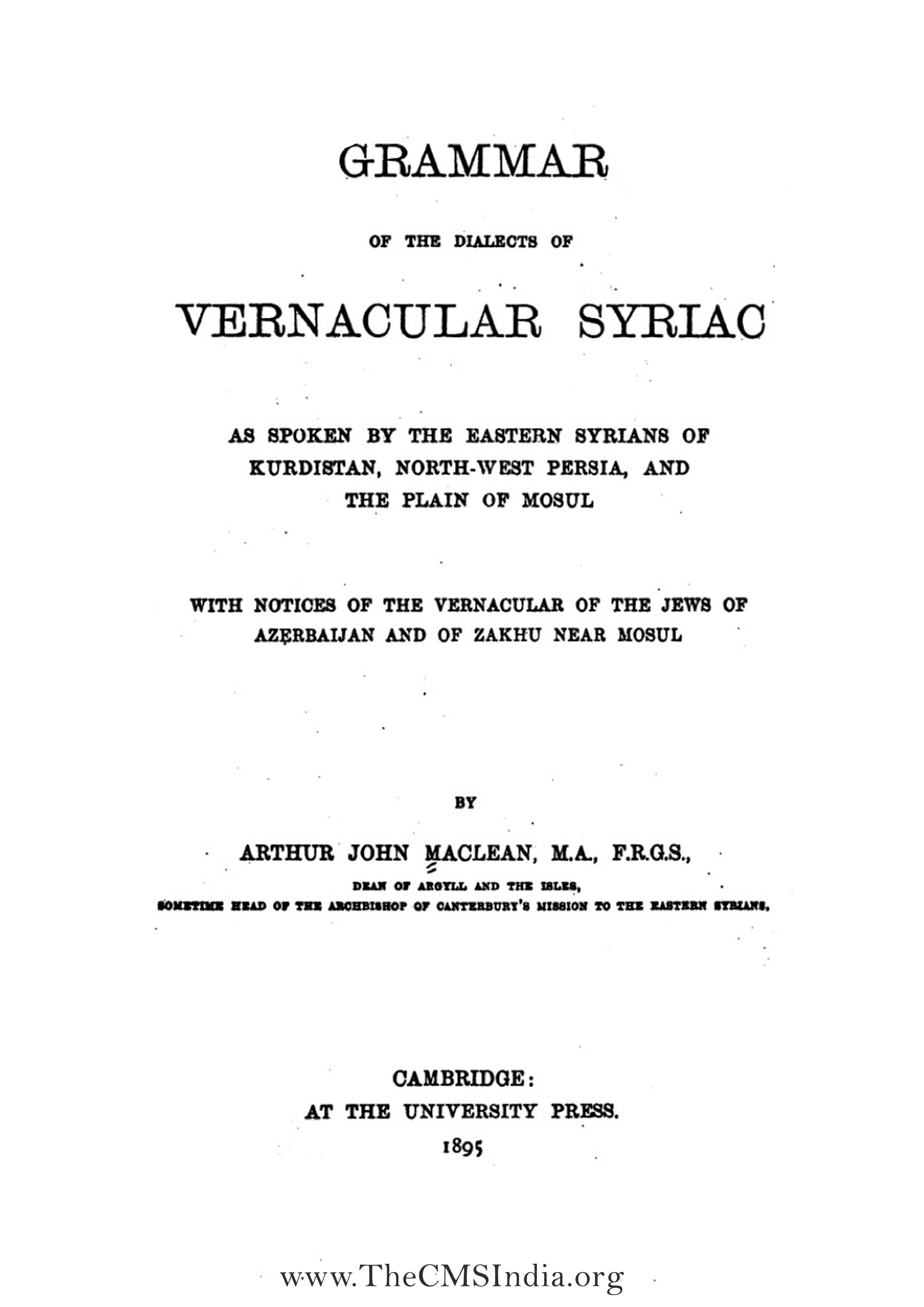 Keywords-#GrammaroftheDialectsofVernacularSyriac #VernacularSyriac #ArthurJohnMaclean #Maclean #JohnMaclean #DeanofargyllandtheIbles #ArchbishopofCanterbury'sNissiontotheEasternSyrians #EasternSyrians #CambridgeUniversityPress